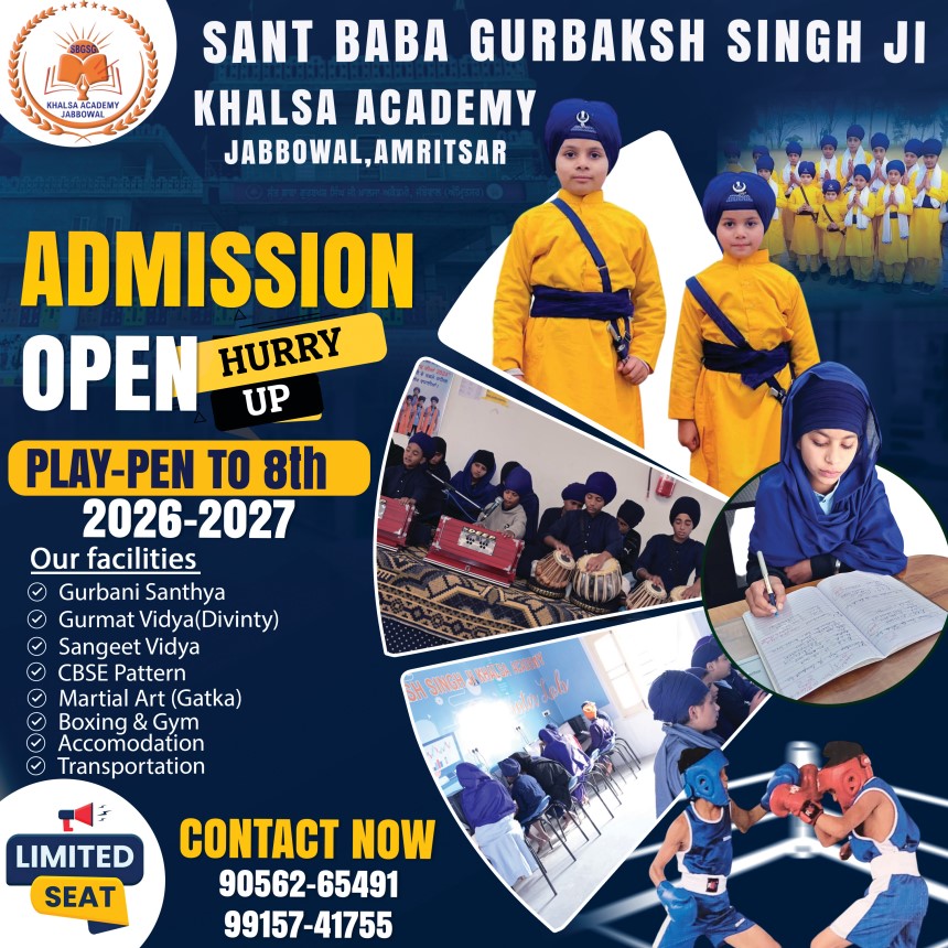 Enroll now for the 2026-27 academic year at Sant Baba Gurbakhash Singh Khalsa Academy. Discover a nurturing environment, innovative teaching methods, and a pathway to excellence. Secure your child's future with us today!